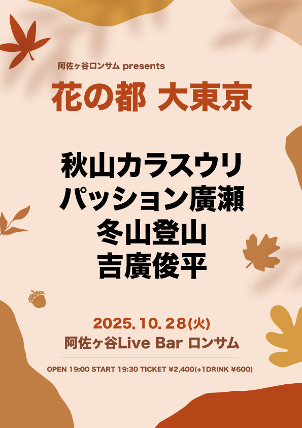 ADV ¥3,000 / DOOR ¥3,500(+1Drink ¥600)